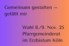 Jetzt gilt es: Bei der Kirchenvorstandswahl 2025 Kirche vor Ort mitgestalten! Am 8. und 9. November ist es soweit: Im Erzbistum Köln werden neue Kirchenvorstände (KVs) gewählt und Du kannst mitgestalten, sowohl als Kandidatin oder Kandidat wie auch als Wählerin oder Wähler.