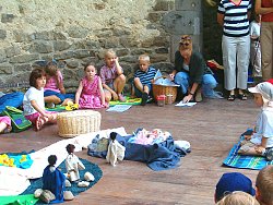 „Schau auf Gottes Schöpfung“ war der Appell an die dreißig Kinder, die sich mit ihren Eltern am Sonntagvormittag eingefunden hatten und in mehreren Becherlupen die kleinsten Geschöpfe Gottes bestaunen konnten. Auch auf diese achtzugeben und sie nicht leichtfertig zu vernichten, davon erzählte das Märchen von der Bienenkönigin, das aufwändig mit vielen Legematerialien in der Mitte dargestellt wurde und alle großen und kleinen Besucher in den Bann zog. Das abschließende gemeinsame Picknick diente dem ungezwungenen Kontakt untereinander.