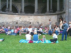 Der letzte Kleinkindergottesdienst vor der Sommerpause fand zum 2. Mal in seiner Geschichte in der Chorruine Heisterbach unter freiem und auch sonnigem Himmel statt.