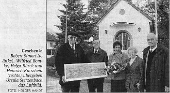 RAUSCHENDORF. Wenn ein engagierter Mensch 80 Jahre alt wird, ist das gewiss ein Grund zu feiern. Wenn besagter Mensch auch noch mehr als die Hälfte dieser Lebenszeit einer ehrenamtlichen Aufgabe widmet und mit Herz und Seele dabei ist, dann bedarf es einer besonderen Ehrung. Das dachten sich die Ortsvereine Rauschendorfs, als sie am Samstag Ursula Sterzenbach in ihrer Wirkungsstätte, der Kapelle im Zentrum des Dorfes, ihre Aufwartung machten. Mit einem Gottesdienst im „Rauschendorfer Dom“, zelebriert von Pastor Thomas Zensus, der eigens aus Kommern zu seiner ehemaligen Wirkungsstätte gereist war, begann die Feier. Bürgervereinsvorsitzende Helga Rüsch ließ Sterzenbachs Wirken Revue passieren. Seit 1961 kümmert sich die rüstige Seniorin unentgeltlich um das Innere des kleinen Sakralbaus, der dem heiligen Donatus, Schutzpatron gegen Unwetter, geweiht ist. Ob Sauberkeit oder Blumenschmuck, das Läuten des Glöckchens für Verstorbene in der Neujahrsnacht - alles übernimmt Sterzenbach mit hohem persönlichem Einsatz. ,,Damit ist Frau Sterzenbach der Dreh- und Angelpunkt der Katholiken im Ort, besonders der Älteren", so Rüsch. Aber auch an der Ökumene im Dorf habe sie aktiv mitgearbeitet. ,,Sie war und ist gegenüber Veränderung in Gesellschaft und Kirche stets offen." Stellvertretend für die zählreichen Gäste sprach Rüsch der Geehrten Dank für ihre Lebensleistung aus und überreichte ihr ein gerahmtes Luftbild Rauschendorfs. bsa