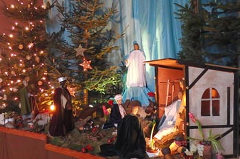 | In den Kirchen unserer Pfarreiengemeinschaft stehen nun schon seit einige Tagen wieder die Krippen, die uns das Geschehen der Weihnacht bildlich vor Augen führen. Dabei haben die Krippen in unseren Kirchen sehr verschiedene Traditionen und werden in unterschiedlicher Weise gestaltet. | |