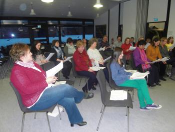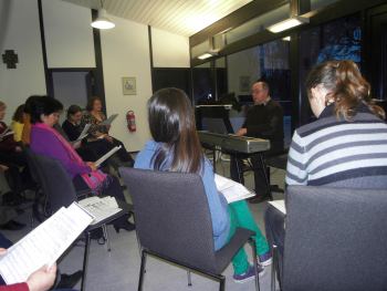...und zwar aus dem 18., 19. und 20. Jahrhundert präsentierten junge und junggebliebene Sängerinnen und Sänger aller Altersstufen am 19. Januar 2013 in der Vorabendmesse von St. Margareta, Stieldorf. Peter Hartung hatte zu einem Projektchor eingeladen – und etwa 25 sangesfrohe Mitwirkende aus Stieldorf und Oberpleis trafen sich am Nachmittag in unserem Pfarrheim, um vier Stunden lang drei mehrstimmige Weihnachtslieder einzustudieren: „Dulcis Jesu“ von Paul Fürst Esterházy de Galántha (1635-1713), „Quem pastores laudavere“ von Carl Loewe (1796-1869) und „Christmas Lullaby“ von John Rutter (*1945). Unterbrochen wurde die Probenarbeit an einer Kaffe-und-Kuchen-Tafel, die von fleißigen Teilnehmerinnen reichlich bestückt worden war und ebenso reichlichen Zuspruch fand. Neben musikalischen Anforderungen waren auch sprachliche Schwierigkeiten zu bewältigen. Denn wir hatten es mit lateinischen und englischen Texten zu tun. Und so manch einer lernte dabei, dass lullaby (engl. „lallabai“) ein Wiegenlied und vultus (lat.) ein Lächeln (hier des Jesuskindes) bedeutet. Allerdings war auch mit Großem Latinum nicht sichergestellt, dass alles korrekt übersetzt werden konnte. Vielleicht handelte es sich ja um eine bestimmte Form von späterem „Kirchenlatein“. Die Stimmung unter den Mitwirkenden hätte nicht besser sein können. Auch Peter Hartung zeigte seine Freude über die Anzahl und den Einsatz derer, die seiner Einladung gefolgt waren. Dazu kam der Dank der Gottesdienstbesucher und des Pfarrers am Ende der Messe. Es besteht die Absicht, zu einem ähnlichen Vorhaben im Sommer einzuladen – es dürfte viele geben, die sich darauf freuen. Gernot Richter | |
