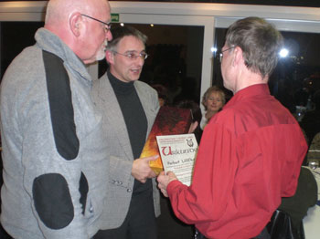 ![]() 1992 – der Naturschutzbund Deutschland erklärt das Rotkehlchen zum Vogel des Jahres. Seinen Gesang kann man fast das ganze Jahr über hören, heißt es in meinem Vogelbuch. So ist es zum Glück auch bei Herbert Löffler, der seit 15 Jahren sein Goldkehlchen im Tenor erklingen lässt. Die Parallele zum Rotkehlchen ist übrigens unbestreitbar, denn auch Herbert ist fast das ganze Jahr über zu hören, kaum eine Chorprobe, wo er nicht da ist. Auch sonst ist auf ihn stets Verlass, wenn es darum geht, mit anzupacken oder Dienst in diversen Getränkeständen zu übernehmen. Lieber Herbert, es war eine weise Entscheidung, die du 1992 getroffen hast. Wir danken dir ganz herzlich, wir wünschen dir weiter viel Freude bei uns. |