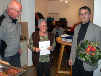![]() 1972 – wir erinnern uns: Willy Brandt übersteht im Bundestag das seltene Ereignis des konstruktiven Misstrauensvotums. In München finden die Olympischen Spiele statt. Die deutsche Fußballnationalmannschaft wird zum ersten Mal Europameister. Vicky Leandros gewinnt in Edinburgh den Grand Prix für Luxemburg. Die Vicky Leandros von Heisterbacherrott heißt Irmgard Beck. Sie singt sich mit liebenswürdigen Art sogleich in die Herzen der Cäcilia. Chorsingen hat in ihrer Familie Tradition, auch ihr Vater Johann Pütz (der Pütze Scheng) war schon im Kirchenchor aktiv. Der Alt hat in ihr eine große Stütze, nur ganz selten bleibt ihr Platz bei den Proben einmal frei. Das ist ein „gewaltiger Schutz“ für den Alt, denn das bedeutet der althochdeutsche Name Irmgard. Es sei mir auch hier der Bezug zum Vogel des Jahres 1972 gestattet – diese Wahl gibt es nämlich erst seit 1971, so dass ich bei den noch ausstehenden Ehrungen ja nicht mehr darauf zurückgreifen kann. 1972 war es der Steinkauz, und siehe da, hier stimmt einiges: er ist ein ausgesprochener Standvogel und zeigt Brutortstreue. Er verlässt sein Revier auch bei anhaltend hohen Schneelagen und Kälteperioden nicht. 35 Jahre Treue zur Cäcilia können diese Aussagen nur bestätigen. Liebe Irmgard, herzlichen Dank für deine Verbundenheit mit dem Kirchenchor. Wir hoffen, dass du dich auch weiter in unseren Reihen wohl fühlst. Und eines muss ich noch zum Steinkauz sagen: kauzig bist du nun wirklich nicht! |