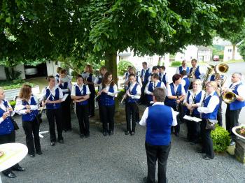 ![]() Der Musikzug der Feuerwehr Eudenbach empfing die Pilger an der Kapelle |